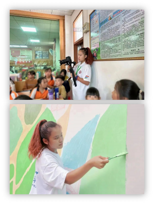 2023年暑期 ,唐嘉妍同学投身广东青年大学生“百千万工程”突击队行动 ,参与乡村振兴、红色义教 、 社区美育课堂三个项目队伍奔赴三地 ,开展近40天的社会实践活动 , 用镜头记录并宣传优质农产品 ,主导设计“红色印记 ,蓝康精神”墙绘电子稿 , 协助完成绘制蓝康精神主题墙 绘五幅 ,从多角度贡献青年力量 ,以实际行动当好乡村振兴的“宣传员” ,涵养“自找苦吃”的精气神 , 勇担时代重任 ,践行青春使命。