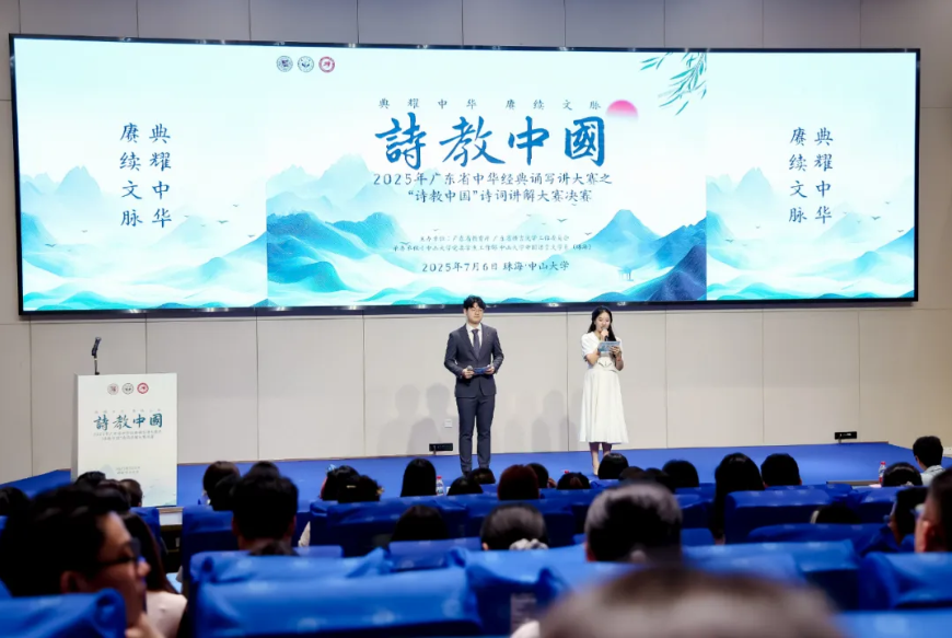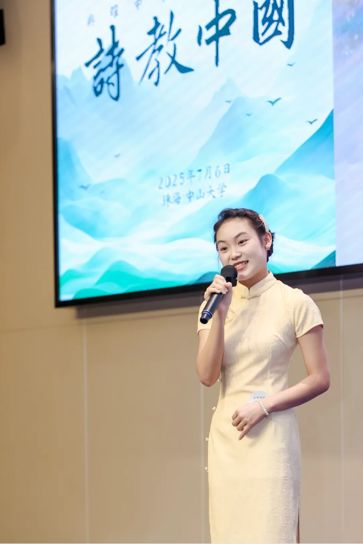 “中华经典诵写讲大赛”是教育部、国家语委主办的全国性重要赛事,旨在传承弘扬中华优秀传统文化。本届广东省“诗教中国”诗词讲解大赛是其核心赛事之一,由广东省教育厅、广东省语言文字工作委员会主办,中山大学中国语言文学系(珠海) 具体承办,赛事级别高、规模大、专业性强,吸引了全省众多高校、中小学师生及在华留学生同台竞技。大赛聚焦古诗词的理解、赏析与讲解能力,要求选手不仅要有深厚的文学素养,还需具备出色的语言表达与现场发挥能力。决赛于7月6日在中山大学珠海校区隆重举行,分多组别同时进行,竞争异常激烈。