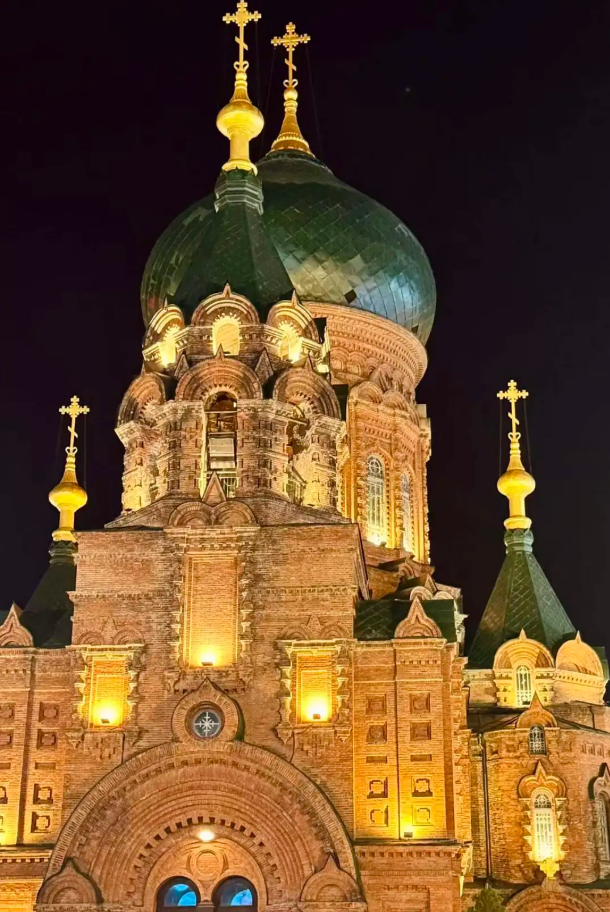 这条街道的尺度、建筑的立面装饰,乃至地砖的铺砌方式,都是一种“空间修辞”,它们无声地讲述着殖民时期的文化植入与权力规划。 随后,我们抵达圣索菲亚广场。巨大的绿色穹顶在阳光下熠生生辉,红砖墙体厚重而沧桑。作为哈尔滨最具标志性的东正教堂,它曾是沙俄扩张时期精神统治的象征。如今,其内部已改建为“哈尔滨建筑艺术博物馆”,陈列着大量历史照片与模型。在这里,我们系统性地了解了这座城市如何从一个江畔小渔村,演变为一座因铁路而兴的国际商埠,其建筑风貌的变迁本身就是一部中西文化碰撞与层累的视觉史。