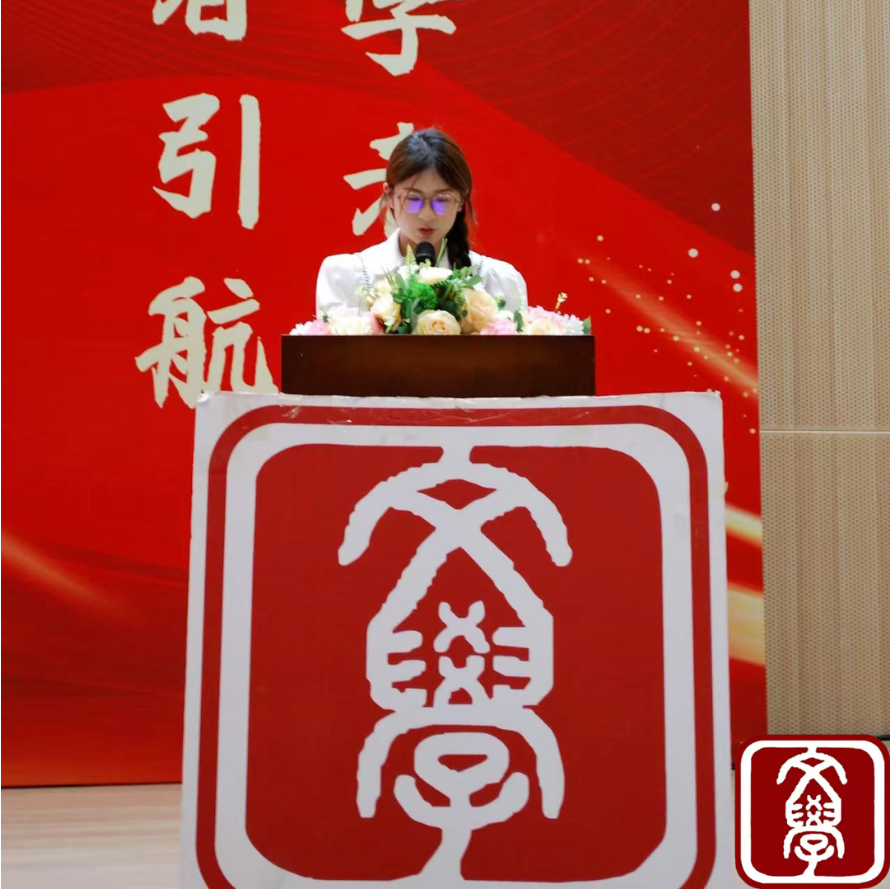 师者之言,如灯引路。教师代表张金龙以“得天下英才而教育之”抒怀,细数文学院“宝藏教师”的学术热忱——从唐诗宋词的浪漫解析,到现当代文学的社会洞察,更叮嘱新生培养自主学习与深度思考能力,在文字世界中探寻思想真谛。辅导员代表何致颖则以“破茧、深耕、怀瑾、向阳”四句箴言,承诺将做新生的“灯塔与港湾”,陪伴大家在集体温暖中涵养德行、绽放光芒。