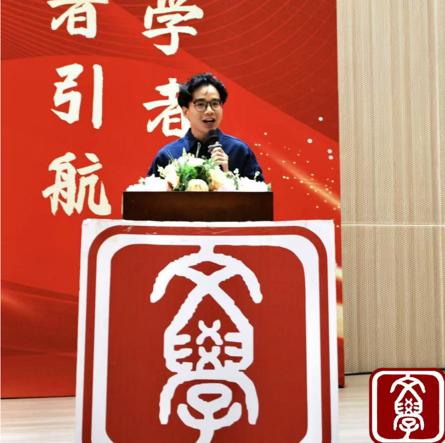 新生代表徐绮镟的发言满含青春朝气,她分享从“应试作文”到领悟文学真谛的转变,誓言以笔为犁,在《诗经》的吟唱与时代的浪花中耕耘“文学春天”;老生代表邓诗晴则以过来人之姿,分享“明确目标、善用资源、深耕实践、常怀感恩”的成长心得,为学弟学妹送上诚挚祝福。