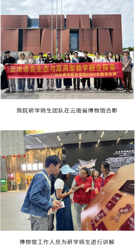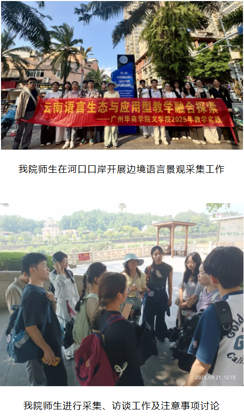 为深入探索语言生态与应用型教学的融合路径,提升学生的语言实践能力与跨文化交际素养,广州华商学院文学院师生一行16人,在对外汉语系冉茅老师、匡芳莹老师等6名老师的带领下,于9月19日至23日赴云南省昆明市、红河哈尼族彝族自治州开展为期五天的社会语言调查、普通话推广调查与高校交流研学活动。本次活动以“语言生态考察+文化体验+学术交流”为主线,结合社会语言学、应用语言学、普通话培训与测试课程相关内容进行实践,研学内容丰富、行程紧凑,取得了丰硕的实践成果与交流成效。
